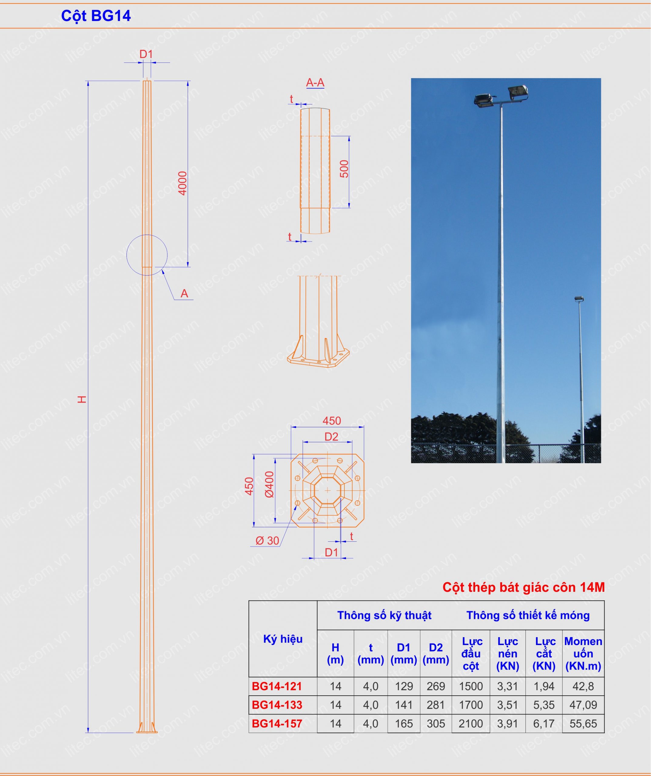 CỘT BÁT GIÁC 14M – CỘT BG14m