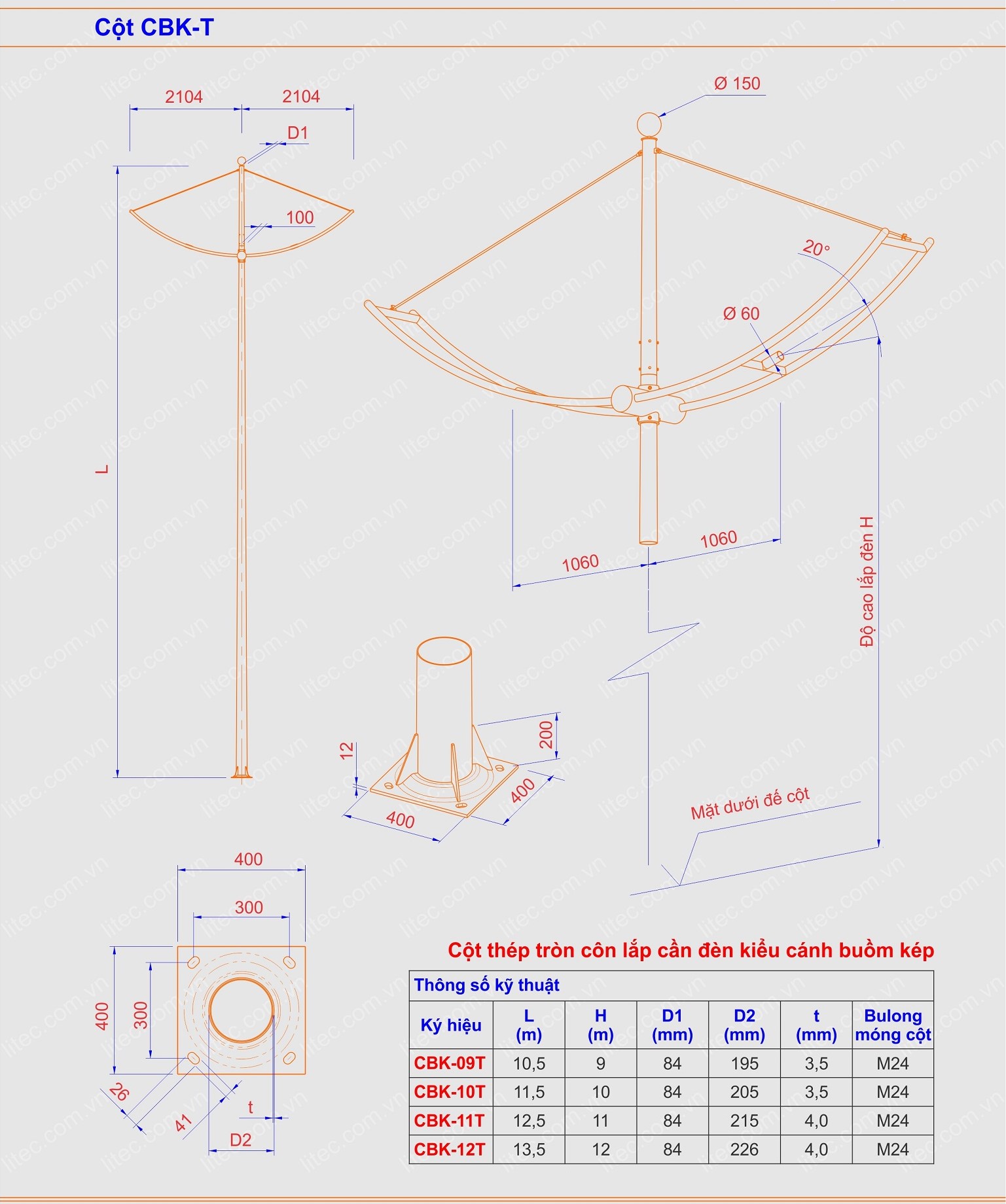 CỘT ĐÈN CẦN CÁNH MUỒM KÉP – CỘT CBK