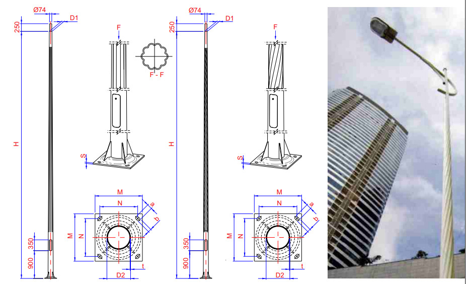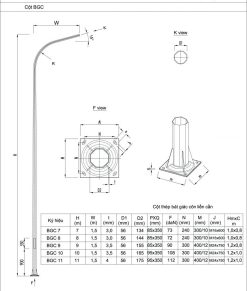Cột thép lắp cần đèn rời rãnh thẳng và rãnh xoắn